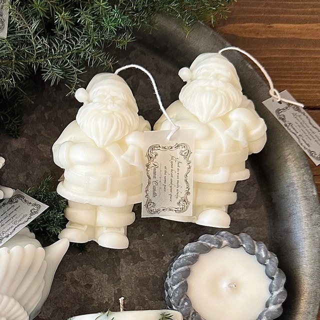 サンタクロースの形をした オブジェキャンドル 天然素材のソイワックスで仕上げています インテリアになじむナチュラルなホワイトカラー クリスマスアイテムで暖かな灯りが灯りますように☆ 【香り】 なし 【素材】 ソイワックス 【サイズ】 高さ約9cm×直径5.5cm