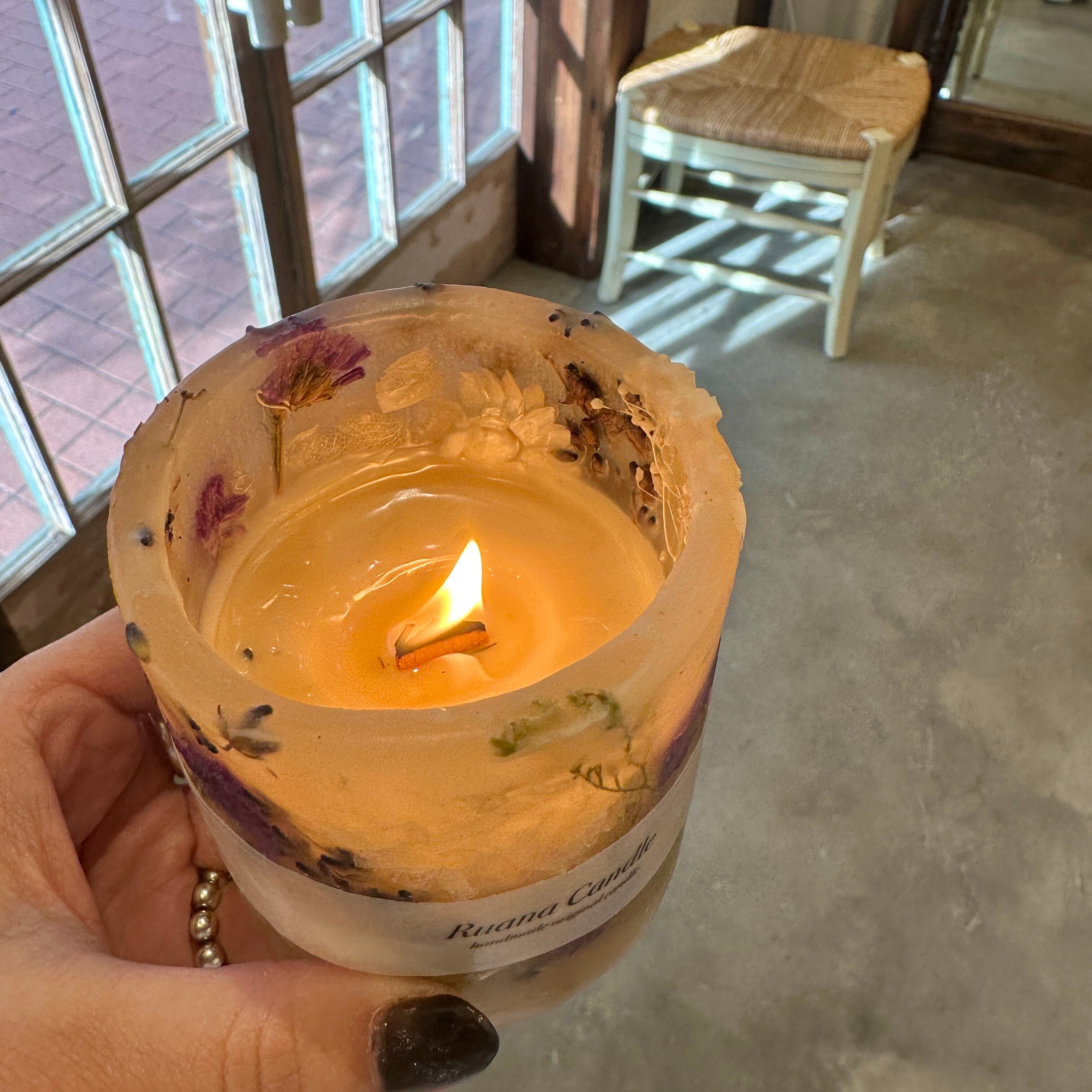 ドライフラワーやプリザーブドフラワーを閉じ込めたボタニカルキャンドル